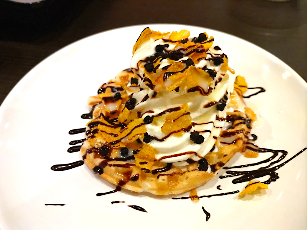 自分で焼き上げるワッフルも食べて、お腹いっぱいに。